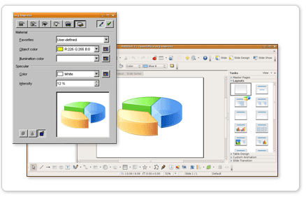 Impress creates exciting slideshow presentations, similar to PowerPoint. Impress can turn presentations into flash files and PDFs. You can even open and edit your existing PowerPoint files with Impress! Impress creates exciting slideshow presentations, similar to PowerPoint. Impress can turn presentations into flash files and PDFs. You can even open and edit your existing PowerPoint files with Impress!